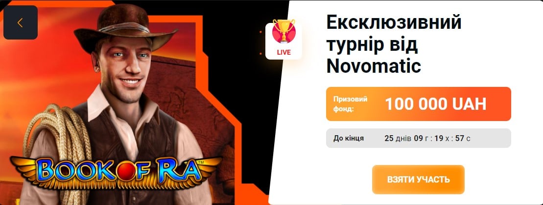 Легальне українське казино за підтримки авторитетного провайдера запустило азартний турнір у розділі казино.